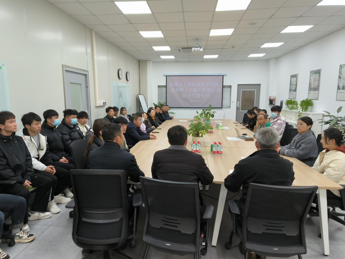 為更好地發(fā)揮黨建引領(lǐng)作用,進一步深化產(chǎn)教融合,近日,電氣工程系黨支部與寧夏裝備制造現(xiàn)代產(chǎn)業(yè)學院分院舍弗勒(寧夏)有限公司黨總支聯(lián)合開展“黨建引領(lǐng)謀發(fā)展 產(chǎn)教融合育新人”主題黨日活動。石嘴山工貿(mào)職業(yè)技術(shù)學院副院長韓恩寬、電氣工程系黨支部副書記王建斌、舍弗勒(寧夏)有限公司黨總支書記郝健、技術(shù)、質(zhì)量及TRB部門黨支部書記李國基等人參加了本次主題黨日。