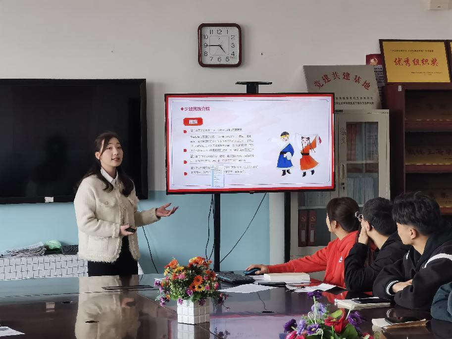 為進(jìn)一步加深對(duì)民族知識(shí)的了解,本次主題黨日活動(dòng)還設(shè)置了民族知識(shí)介紹與有獎(jiǎng)問答等環(huán)節(jié)。民族知識(shí)介紹問答環(huán)節(jié)由入黨積極分子的回族同學(xué)海小娟主持,內(nèi)容涵蓋了中國各民族歷史、文化、風(fēng)俗習(xí)慣等多個(gè)方面,形式生動(dòng)有趣。藏族學(xué)生才讓尖參為與會(huì)師生教授了藏語問候語,東鄉(xiāng)族學(xué)生張少俠介紹了本民族的風(fēng)俗習(xí)慣,滿族學(xué)生李思哲圖文并茂地展示了自己民族的美食,學(xué)習(xí)氣氛輕松熱烈。最后,黨員教師們向少數(shù)民族同學(xué)贈(zèng)送了競猜獎(jiǎng)品,鼓勵(lì)同學(xué)們互敬互愛,歡樂和諧的氛圍展現(xiàn)了黨支部師生團(tuán)結(jié)一心的良好精神風(fēng)貌。