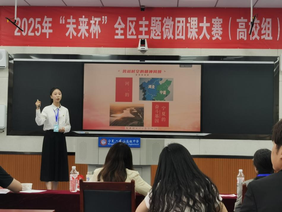 李依瑄同學此次參賽的團課主題為《“冀” 往開來 “寧” 心傳承》。在團課中,她立足“冀”(河北)與“寧”(寧夏)兩地紅色資源聯(lián)動,以獨特的視角、豐富的內容和生動的講述,帶領大家回顧歷史、展望未來,深度詮釋了主題內涵,展現(xiàn)了新時代青年對歷史使命的深刻理解與擔當,贏得了評委們的高度認可。