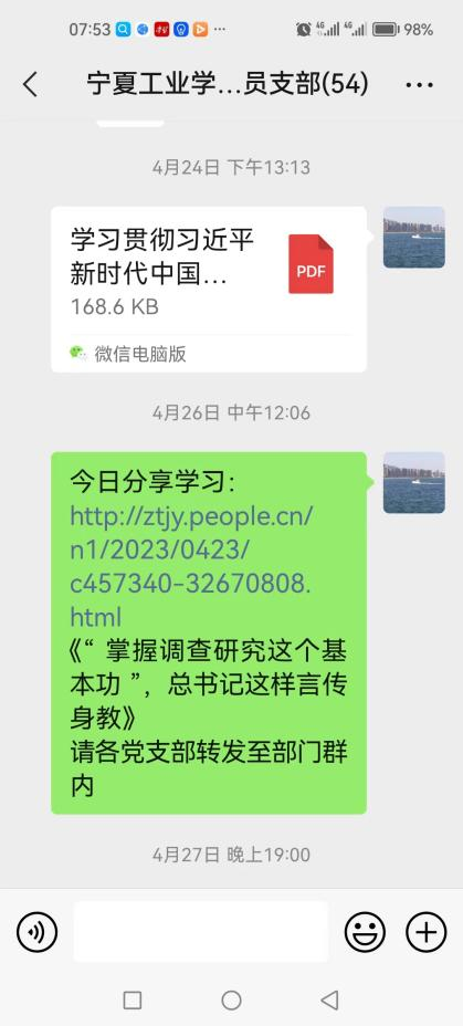 黨支部在主題教育中,認(rèn)真學(xué)習(xí)貫徹黨的二十大精神,以習(xí)近平新時(shí)代中國(guó)特色社會(huì)主義思想為指導(dǎo),篤實(shí)踐行習(xí)近平總書記關(guān)于老干部工作重要指示,圍繞“黨建引領(lǐng)凝心鑄魂”,以主題教育為抓手,落實(shí)“三會(huì)一課”制度。學(xué)用貫通,知行合一,做好黨建共建,促進(jìn)主題教育有力開展;送學(xué)上門,支部微信群推送主題教育學(xué)習(xí)內(nèi)容,切實(shí)推進(jìn)主題教育入腦入心,做好離退休干部教育管理。