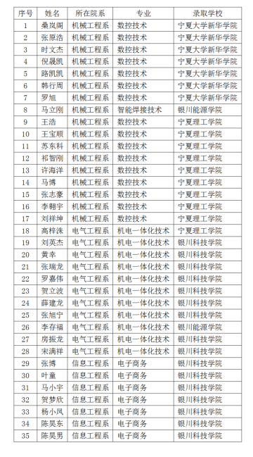 寧夏“專(zhuān)升本”錄取名單陸續(xù)公布,石嘴山工貿(mào)職業(yè)技術(shù)學(xué)院捷報(bào)頻傳。我校第一屆應(yīng)屆畢業(yè)生105位同學(xué)參加考試,45人成功上線(xiàn),上線(xiàn)率達(dá)42.8%。目前,已錄取35人。