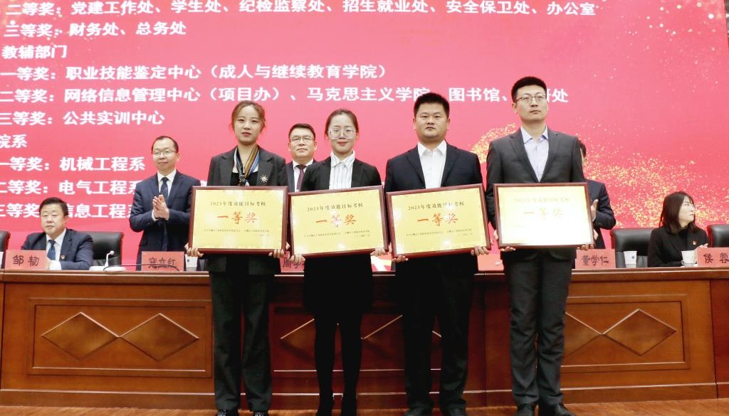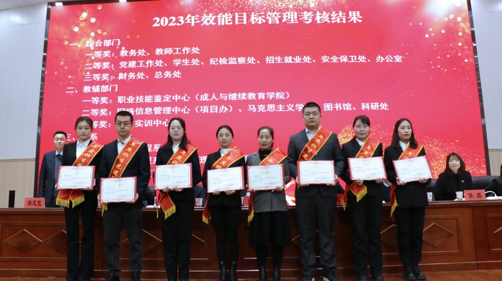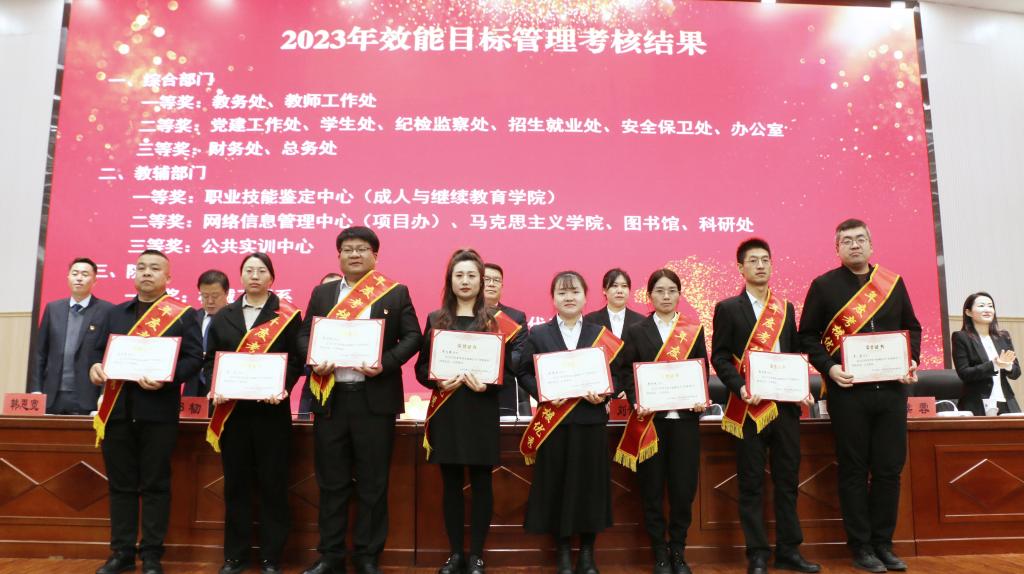 大會上,通報了2023年效能目標(biāo)管理考核結(jié)果,表彰了2023年年度考核優(yōu)秀等次人員、2023年度招生就業(yè)工作先進(jìn)個人、就業(yè)工作先進(jìn)集體。機械工程系副主任蘭晏文、電氣工程系副主任劉博雅、商貿(mào)管理系教師宋仁娟、商貿(mào)管理系教師王曉紅分別圍繞工作實際,總結(jié)2023年日常工作、招生就業(yè)工作經(jīng)驗,做了交流發(fā)言。