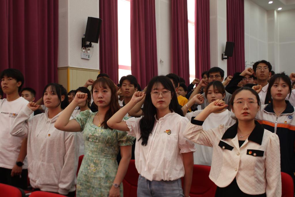 會(huì)上舉行了入團(tuán)儀式,學(xué)院領(lǐng)導(dǎo)為新團(tuán)員代表佩戴團(tuán)徽、頒發(fā)團(tuán)員證。全體新團(tuán)員進(jìn)行入團(tuán)宣誓,老團(tuán)員重溫入團(tuán)誓詞。
