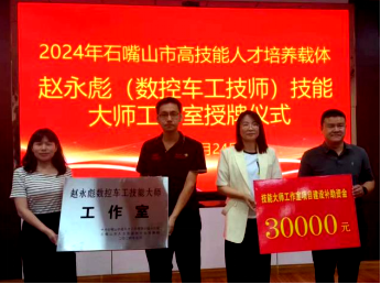最后,與會(huì)領(lǐng)導(dǎo)為技能大師工作室進(jìn)行了授牌。趙永彪(數(shù)控車工技師)技能大師工作室和霍利敏(電工高級(jí)技師)技能大師工作室作為本次授牌儀式的代表,接受了榮譽(yù)牌匾。