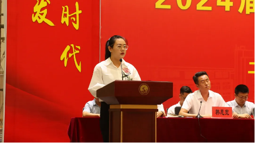 學(xué)院黨委副書記、院長劉素花同志宣讀《關(guān)于準予胡益賓等1115名高職學(xué)生、馬佳俊等1228名中職學(xué)生畢業(yè)的決定》。向畢業(yè)生送上畢業(yè)祝福,并勉勵畢業(yè)生傳承工貿(mào)光榮傳統(tǒng),牢記師長祝福囑托,在未來的人生征程中努力擔(dān)當(dāng)起強國建設(shè)、民族復(fù)興的重任,在新征程上繼續(xù)創(chuàng)造屬于自己的青春華章。