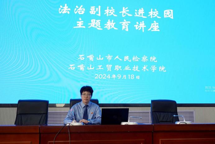 知法律于心,守法律于行。為進(jìn)一步加強(qiáng)未成年人思想道德建設(shè),營造常態(tài)化法治教育氛圍,全面提升學(xué)院師生的法治素養(yǎng)。9月18日下午,石嘴山工貿(mào)職業(yè)技術(shù)學(xué)院邀請(qǐng)石嘴山市人民檢察院黨組成員、副檢察長,學(xué)院法治副校長劉愛娟在九號(hào)樓報(bào)告廳為師生代表做法治教育講座,師生代表200余人參加。
