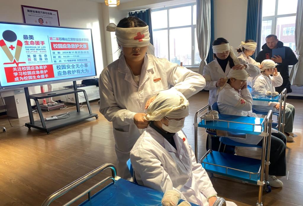 近日,第二屆石嘴山工貿(mào)職業(yè)技術(shù)學(xué)院校園應(yīng)急救護(hù)大賽在中醫(yī)實(shí)訓(xùn)室有序進(jìn)行,本次比賽主題為“校園安全無(wú)小事,應(yīng)急救護(hù)有大為”,共有來(lái)自全校4個(gè)院系的38支代表隊(duì),97名師生積極報(bào)名參賽,為了凸顯大賽的公平性和專(zhuān)業(yè)性,本次大賽共設(shè)有4個(gè)賽道:
