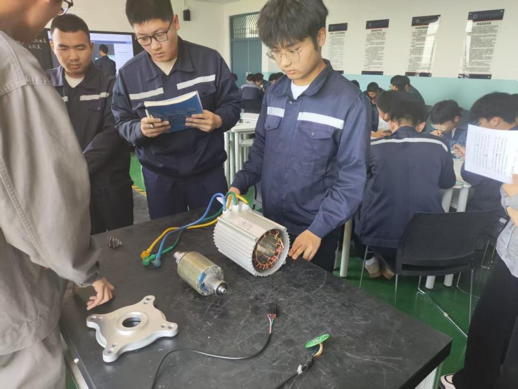 本次課程充分發(fā)揮學生自主性,三個小組分別上場實操演練永磁同步電機拆裝檢查,其余學生通過虛擬仿真手段同步演練。學生們任務安排合理,分工明確,步驟規(guī)范,表達清晰,流暢完成了課程任務各項實操環(huán)節(jié),提升了自身理論與實操水平。羅娜老師實時關注學生實操過程,及時給出提醒與建議,并在學生實操結束后進行總結,提醒學生注意實操中出現(xiàn)的問題并及時改正。