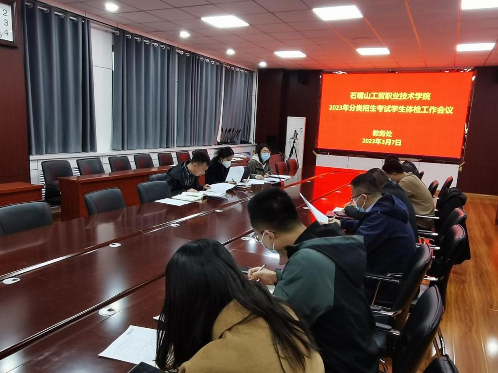 為做好完成2023年分類招生考試學(xué)生體檢工作,3月7日下午,教務(wù)處組織召開(kāi)了2023年分類招生考試學(xué)生體檢工作會(huì)議,教務(wù)處、學(xué)生處、保衛(wèi)處、總務(wù)處及各院系有關(guān)負(fù)責(zé)人和工作人員參會(huì),會(huì)議由教務(wù)處處長(zhǎng)石旭主持。