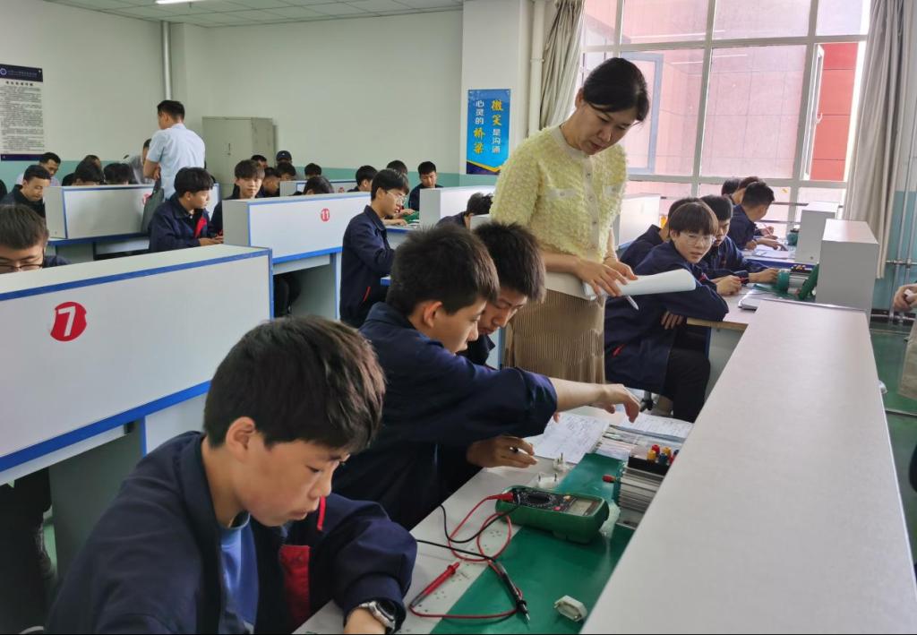 機(jī)電一體化教師高麗霞講授了《數(shù)字萬用表的使用》,通過課前、課中、課后的有效結(jié)合,讓學(xué)生很好掌握了數(shù)字萬用表的使用方法。課前,線上發(fā)布預(yù)習(xí)資源和任務(wù)單;課中,演示數(shù)字萬用表的操作方法、接錯插孔導(dǎo)的后果等,引導(dǎo)學(xué)生掌握操作方法;課后,引導(dǎo)學(xué)生完成相關(guān)資料查詢,拓展知識面。
