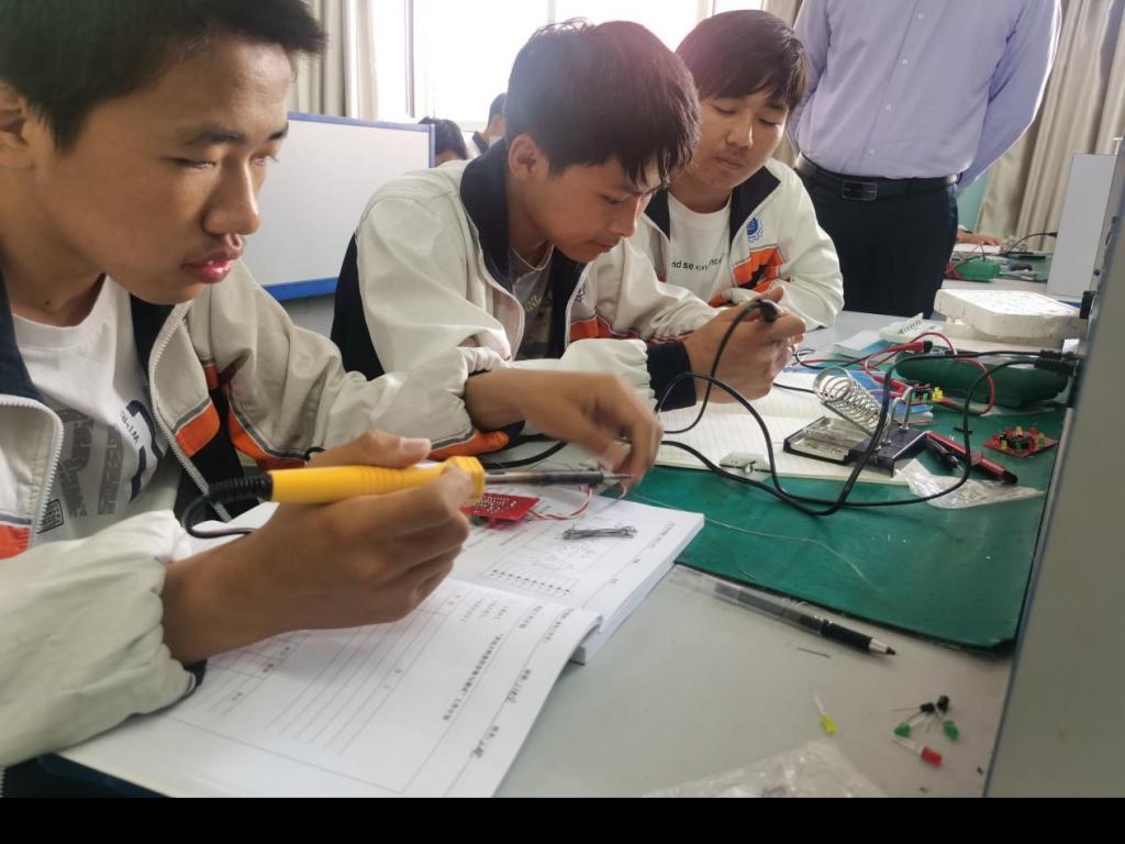 光伏工程技術(shù)應(yīng)用教師趙迎春講授的專業(yè)實(shí)訓(xùn)課程《幸運(yùn)大轉(zhuǎn)盤的安裝與調(diào)試》,主要以工作原理的分析、電子線路的安裝、焊接和調(diào)試四個部分進(jìn)行課堂實(shí)訓(xùn),并以小組合作的形式完成課堂任務(wù),將枯燥和抽象的課堂知識變得有趣化和具體化,同時培養(yǎng)了學(xué)生動手動腦全面發(fā)展的能力。