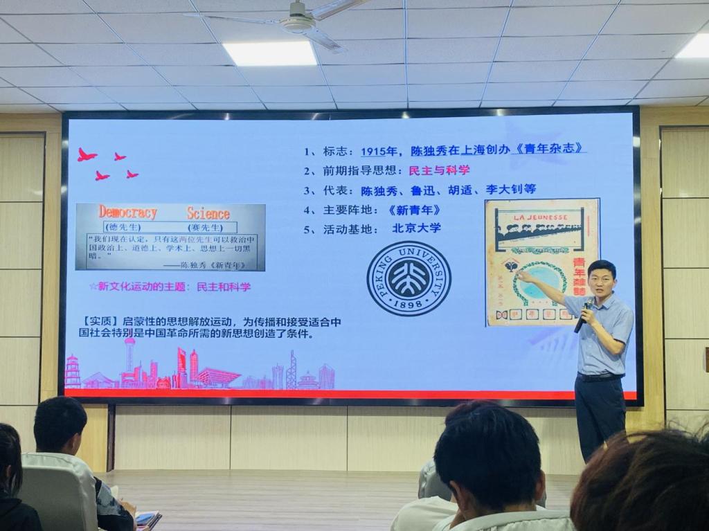 開(kāi)班儀式結(jié)束后,馬克思主義學(xué)院院長(zhǎng)范青以《黨的創(chuàng)建與紅船精神》為主題,為全體參訓(xùn)學(xué)員進(jìn)行授課。他圍繞中國(guó)共產(chǎn)黨的創(chuàng)建歷史、紅船精神的精神內(nèi)涵以及五四運(yùn)動(dòng)的意義這三個(gè)問(wèn)題,帶領(lǐng)全體參訓(xùn)學(xué)員回顧了黨的建設(shè)歷程、黨的偉大成就,教育引導(dǎo)全員牢記黨的歷史,自覺(jué)繼承和發(fā)揚(yáng)紅船精神,為中華民族偉大復(fù)興而努力奮斗。