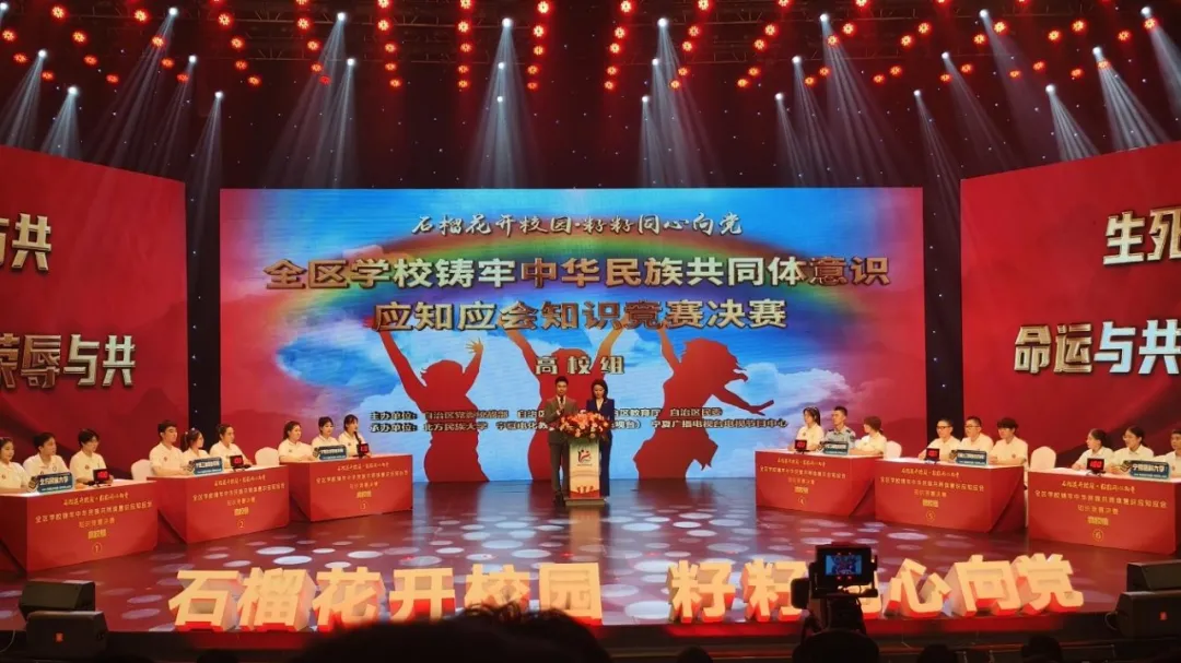 6月20日,在全區(qū)學(xué)校鑄牢中華民族共同體意識(shí)應(yīng)知應(yīng)會(huì)知識(shí)競(jìng)賽決賽(高校組)的激烈角逐中,石嘴山工貿(mào)職業(yè)技術(shù)學(xué)院代表隊(duì)?wèi){借扎實(shí)的知識(shí)儲(chǔ)備、出色的團(tuán)隊(duì)協(xié)作和敏捷的思維反應(yīng),在眾多參賽隊(duì)伍中脫穎而出,喜獲佳績(jī),為學(xué)院贏得了榮譽(yù)。