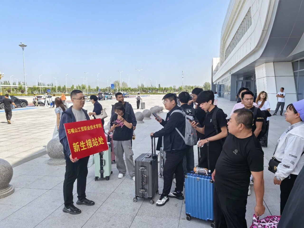 學院在石嘴山高鐵站、汽車站均設(shè)置迎新接待點,安排專車往返接送新生及家長。“工貿(mào)新生請這邊上車!”——志愿者們手舉指引牌,用一聲聲親切的呼喚,送上抵達石嘴山后的第一份溫暖。