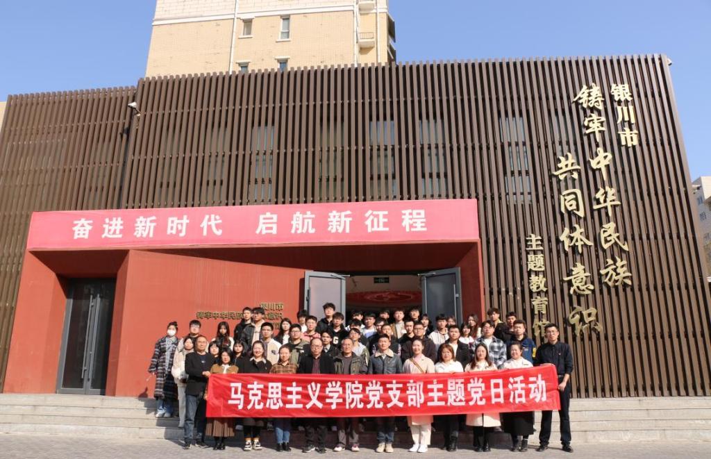 為認(rèn)真學(xué)習(xí)貫徹習(xí)近平總書記關(guān)于加強(qiáng)和改進(jìn)民族工作的重要思想,牢固樹立“民族團(tuán)結(jié)一家人、中華民族一家親”理念,把鑄牢中華民族共同體意識這條主線貫穿學(xué)校教育教學(xué)、理論研究闡釋、政治思想教育、精神文明創(chuàng)建等各項(xiàng)工作中。馬克思主義學(xué)院黨支部全體黨員及學(xué)院學(xué)生代表于3月13日前往銀川市鑄牢中華民族共同體主題教育館開展了“石榴花開校園 籽籽同心向黨”——場館里的思政課主題黨日活動。