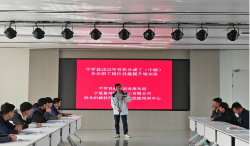 下午化工有機(jī)合成工二班開班,市人社局職建科王珅科長(zhǎng),市就業(yè)局贠鋒科長(zhǎng),平羅縣就業(yè)局培訓(xùn)辦主任余立國(guó),岳東玲主任蒞臨培訓(xùn)班檢查工作。