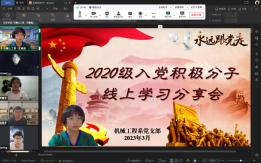 近日,機械工程系黨支部副書記王雅歆以“以青春之力托舉中國式現(xiàn)代化——全國兩會精神解讀”為主題,先后通過線上、線下的方式為在企業(yè)實習的20級入黨積極分子和21級在校入黨積極分子上了一堂生動、深刻的專題黨課。