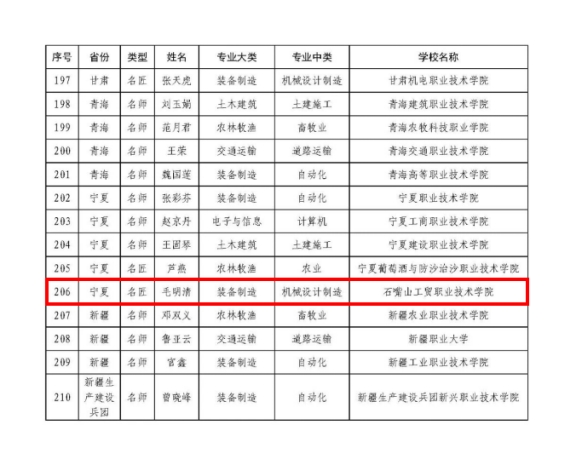 喜報(bào) | 我院教師毛明清入選教育部新時(shí)代職業(yè)學(xué)校名師(名匠)名校長培養(yǎng)計(jì)劃(2023-2025)名師(名匠)培養(yǎng)對象名單