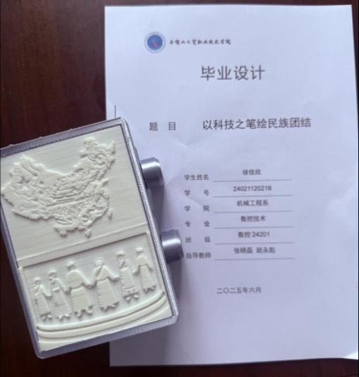 畢業(yè)設計作品緊密對接“崗課賽證”,主題豐富、形式多樣。有的立足崗位需求與實踐應用,設計創(chuàng)意燒烤架設計、無人機底板修復等作品;有的融合課程知識與技術創(chuàng)新,設計慶祝澳門回歸25周年及港珠澳大橋設計模型等作品;有的蘊含競賽元素與挑戰(zhàn)精神,設計復雜獎杯零件精密加工等作品。