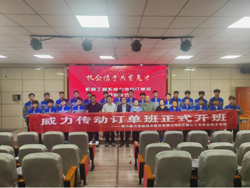 9月16日上午,石嘴山工貿(mào)職業(yè)技術(shù)學(xué)院與銀川威力傳動(dòng)技術(shù)股份有限公司校企合作項(xiàng)目——“威力傳動(dòng)訂單班”開(kāi)班儀式在學(xué)院3號(hào)樓報(bào)告廳隆重舉行。