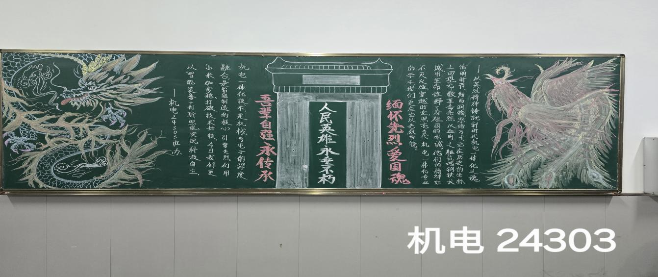 為弘揚革命先烈愛國精神,傳承紅色基因,豐富校園文化生活,近日,石嘴山工貿(mào)職業(yè)技術(shù)學(xué)院電氣工程系團委成功舉辦了以“緬懷先烈愛國魂,吾輩自強永傳承”為主題的黑板報活動。此次活動吸引了電氣工程系全體班級參與,各班同學(xué)積極響應(yīng),圍繞主題精心創(chuàng)作,用一幅幅精美的黑板報展現(xiàn)出對先烈的緬懷與傳承紅色精神的決心。