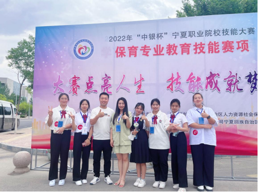 2022年我校商貿管理系幼兒保育專業(yè)黃慧慧、李玉軒、馬瑩瑩、趙婷、張淼、程文珺6名學生在指導教師馬冰,宋仁娟的帶領下在全區(qū)中等職業(yè)學校學生技能大賽幼兒教育技能賽項中,分別榮獲了推薦組和抽選組兩個團體一等獎的好成績。2023年4月8日,昔日同食、同住、同奮斗的6人又共同參加了寧夏師范學院的面試,經過緊張激烈的競爭,她們如愿被學前教育專業(yè)錄取,獲得了免試直通本科的機會,不僅延續(xù)了昔日友誼,也共同圓夢大學校園。