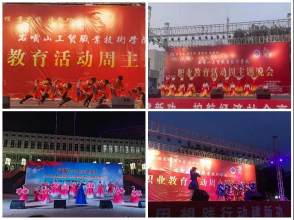 繽紛五月,繁花似錦。為進一步宣傳黨和國家職業(yè)教育方針政策,努力營造全社會關(guān)心和支持職業(yè)教育的良好環(huán)境,全面展示學院辦學成果和師生精神風尚,進一步濃厚職教活動周氛圍,豐富師生文化生活,5月19日晚,圍繞“技能:讓生活更美好”這一主題,石嘴山工貿(mào)職業(yè)技術(shù)學院2023年職業(yè)教育活動周主題晚會在和平廣場隆重舉行,全院師生及社會各界群眾一同觀看。