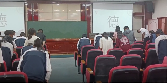 本次活動由商貿管理系團總支學生副書記高菲菲主持,各團支部推選團員代表及學生干部參加活動?;顒庸苍O置七個環(huán)節(jié),即做反省、聽歌曲、看視頻、誦經典、講故事、談感想和向“德”字鞠躬。在主持人的帶領下,同學們回憶了自己與家人相處的模式,欣賞了歌曲《傳承好家風》,觀看了以家庭美德為主題的公益宣傳片,誦讀了《弟子規(guī)》中勸導子女孝敬父母的經典語句。商貿管理系團總支書記王靜老師還為同學們講述了“2023年度最美家庭”榮譽獲得者王亞平的家庭故事。同學們表示本次活動讓自己認識到了構建和諧家庭關系的重要性,也領悟到了家人之間要互相給予尊重和關愛。在全體人員面向“德”字鞠躬中此次活動畫上了圓滿句號。