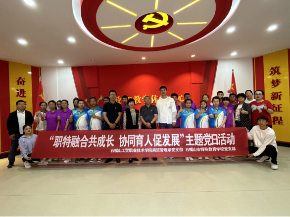 為進一步做好職普融通,發(fā)揮職業(yè)教育服務社會作用,拓展職業(yè)教育與特殊教育的深度融合,6月8日上午,石嘴山市特殊教育學校黨支部副書記張旭峰帶領支部黨員教師及17名特色班學生來到我院開展“職特融合共成長,協(xié)同育人促發(fā)展”為主題的職特融合暨支部共建交流活動。