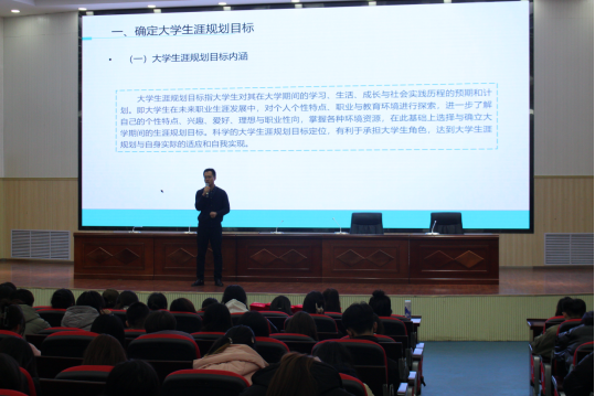活動中,商貿管理系主任蓋猛圍繞“規(guī)劃你的大學生活”、“就業(yè)創(chuàng)業(yè)指導”展開授課。為全體學生講述了學院歷屆學生在專業(yè)技能以及各類競賽活動中所取得的優(yōu)異成績,讓同學們對未來的學習生活有了更加深刻的認識。圍繞學生提出的有關學業(yè)困惑、升本就業(yè)等方面問題進行交流,向同學們分析了大學生目前的就業(yè)情況,引導同學們積極關注就業(yè)形勢變化、就業(yè)市場需求以及注重個人實踐能力的提高,為以后實現(xiàn)高質量就業(yè)打下堅實基礎。并鼓勵同學們通過自我認知、優(yōu)劣勢分析、職業(yè)決策與前景分析等方面對自身的職業(yè)生涯進行思考與規(guī)劃。