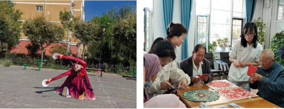 在社區(qū)活動中心,一場充滿民族風(fēng)情的舞蹈互動活動點燃了現(xiàn)場氛圍。太西社區(qū)舞蹈隊與商貿(mào)管理系學(xué)生舞蹈團(tuán)隊聯(lián)袂獻(xiàn)上精心排練的民族舞蹈節(jié)目,優(yōu)美的舞姿、鮮明的民族特色贏得在場人員陣陣掌聲。演出結(jié)束后,商貿(mào)管理系的師生們在社區(qū)活動中心開展了“剪紙傳情,共話團(tuán)結(jié)”教學(xué)活動。師生們提前準(zhǔn)備了紅色彩紙、剪刀、刻刀等工具,并精心設(shè)計了融合民族團(tuán)結(jié)與雙節(jié)元素的剪紙圖案,過程中,針對老人動作遲緩、視力不佳等情況,師生們耐心協(xié)助固定紙張、調(diào)整剪刀角度,手把手教老人剪出流暢線條。不一會兒,老人們紛紛展示出自己的剪紙成果,臉上洋溢著成就感。大家互相欣賞作品,交流剪紙心得,在體驗傳統(tǒng)非遺技藝的同時,進(jìn)一步增進(jìn)了彼此的情感聯(lián)結(jié),讓民族團(tuán)結(jié)的氛圍在指尖的創(chuàng)作中愈發(fā)濃厚。
