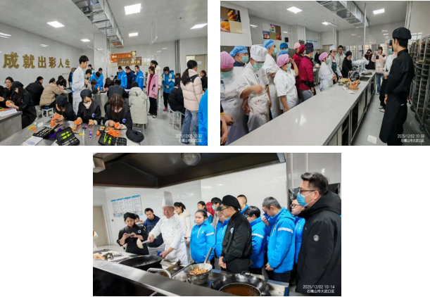 實(shí)訓(xùn)課堂成為活動(dòng)亮點(diǎn)。中餐烹飪實(shí)訓(xùn)室內(nèi),烹飪專(zhuān)業(yè)教師現(xiàn)場(chǎng)演示掛霜花生、拔絲紅薯等菜品制作,特校學(xué)生圍站操作臺(tái),緊盯每一處細(xì)節(jié);雕刻實(shí)訓(xùn)室里,特校學(xué)生被栩栩如生的麻雀雕刻作品深深吸引;西式面點(diǎn)實(shí)訓(xùn)室內(nèi),特校學(xué)生換上整齊制服,由烹飪專(zhuān)業(yè)學(xué)生指導(dǎo)制作肉松小貝,現(xiàn)場(chǎng)氛圍熱烈。一名特校學(xué)生舉著沾滿肉松的手開(kāi)心表示:“這是我吃過(guò)的最好吃的蛋糕!”