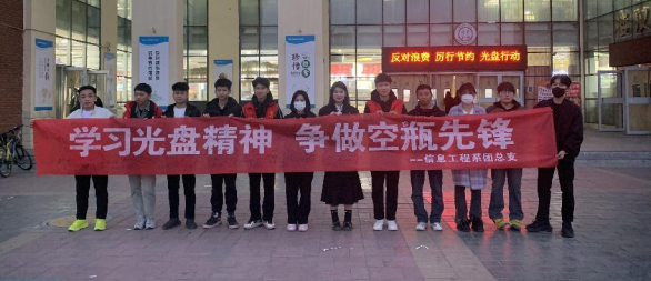 為認真貫徹落實習近平總書記關于厲行節(jié)約、反對鋪張浪費的重要批示精神,弘揚中華民族尊重勞動、勤儉節(jié)約的傳統(tǒng)美德,讓青年學生形成勤儉節(jié)約為榮、鋪張浪費為恥的意識,使勤儉節(jié)約這一中華民族傳統(tǒng)美德入腦入心,信息工程系團總支組織開展“學習光盤精神,爭做空瓶先鋒”主題活動。