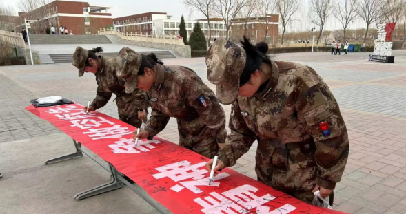 在食堂門口,一條醒目的橫幅格外引人注目。上面印著“學習光盤精神,爭做空瓶先鋒”的醒目標語,呼吁師生們積極參與到節(jié)約糧食、保護環(huán)境的行動中來。許多師生紛紛駐足,認真閱讀橫幅上的內(nèi)容,并在橫幅上鄭重簽下自己的名字,表示對光盤行動和空瓶回收的支持。