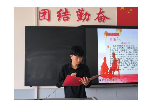 活動伊始,同學們在輔導員的引導下進行了深刻的自我反省。大家紛紛回顧自己在家庭生活中的言行舉止,思考自己在孝敬父母、尊敬長輩方面是否做到了應有的責任和擔當。隨后,全體同學共同唱響了《感恩的心》。同學們用歌聲表達了對父母養(yǎng)育之恩的感激之情,同時也提醒自己要時刻保持一顆感恩的心。緊接著,一部敬老主題的微電影《愛回家》為學生們展現(xiàn)了現(xiàn)代都市人忙于工作而忽視家庭,最終找回親情和家庭溫暖的感人故事。觀影過程中,同學們深受觸動,紛紛表示要珍惜與家人相處的時光。張輝和丁博嶸兩位同學分別講述了《孔融讓梨》和《懷橘遺親》這兩個經典的中華傳統(tǒng)美德故事。通過故事的講述,同學們更加直觀地理解了謙讓、孝順等傳統(tǒng)美德的內涵。通過學習,大家對尊老愛幼、誠實守信等家庭美德有了更深刻的理解,也更加明確了自己在家庭和社會中應扮演的角色。最后,在輔導員的帶領下,全體同學向“德”字鞠躬,表達了對道德的敬畏和尊重。這一儀式感的環(huán)節(jié),讓同學們更加堅定了踐行家庭美德的決心。
