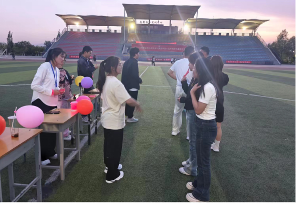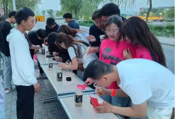 夜幕降臨,12教學(xué)樓門口人頭攢動,學(xué)生們手持熒光棒,在璀璨的光影中統(tǒng)一出發(fā)。夜跑路線設(shè)計巧妙,選手們首先圍繞中心樓ABC區(qū)慢跑一圈欣賞校園夜景,隨后轉(zhuǎn)至操場跑一圈感受夜幕下的運動魅力,最后返回起點。夜跑過程中,組織者穿插了“黃金礦工”“背對背擁抱”“找茬小游戲”“你畫我猜”“精挑細選”“天旋地轉(zhuǎn)”六個精心設(shè)計的障礙小游戲,旨在增加夜跑活動的趣味性和挑戰(zhàn)性。每個游戲不僅考驗著參與者的體力和耐力,更考驗著他們的智慧和協(xié)作能力?;顒蝇F(xiàn)場氣氛熱烈,同學(xué)們熱情高漲。他們或是奮力沖刺,或是與隊友默契配合完成游戲任務(wù)。參與者的臉上洋溢著青春的氣息和快樂的笑容,充分展現(xiàn)了當(dāng)代學(xué)生青年的朝氣與活力。