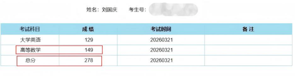 4月15日,寧夏2026年普通高等教育高職(??疲┥究瓶荚嚦煽儾樵兺ǖ篱_通。石嘴山工貿(mào)職業(yè)技術學院信息工程系大數(shù)據(jù)技術專業(yè)學生劉國慶,以總分278分(滿分300分)的優(yōu)異成績,考得寧夏全區(qū)理科段數(shù)據(jù)科學與大數(shù)據(jù)技術專業(yè)第一名!同時,劉國慶同學的高等數(shù)學成績?yōu)?49分(滿分150分),考得寧夏全區(qū)單科成績第一名!