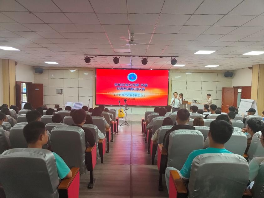 為進一步貫徹落實習近平新時代中國特色社會主義思想,弘揚愛國主旋律,激發(fā)全體師生的愛國熱情,增強愛國情感、陶冶愛國情操,促進校園文化建設,新型材料現代產業(yè)學院團總支于5月18晚上在3號樓報告廳組織開展了吉他樂理與民歌、民謠校園經典歌曲欣賞活動。