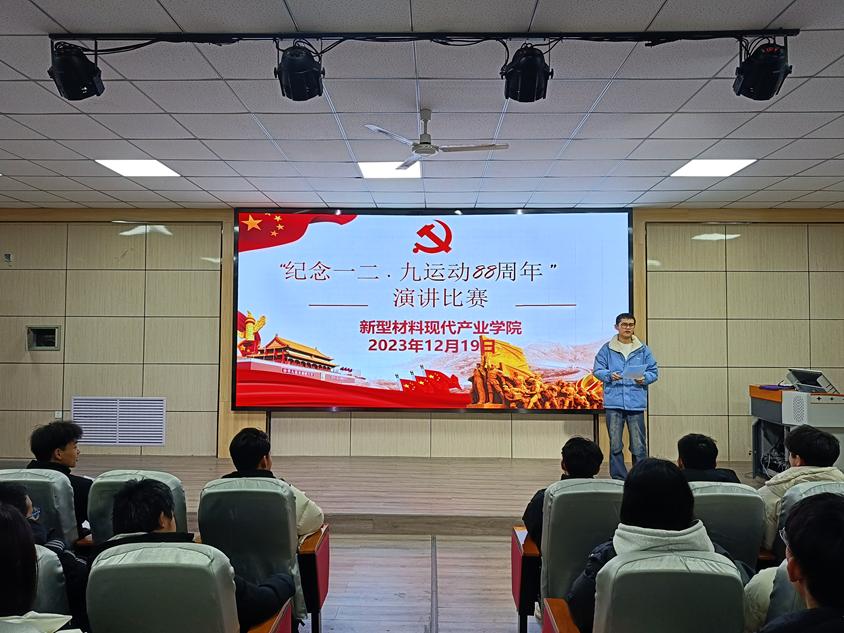 為深入貫徹落實(shí)習(xí)近平新時(shí)代中國(guó)特色社會(huì)主義思想和黨的二十大精神,紀(jì)念“一二·九”運(yùn)動(dòng)88周年,引導(dǎo)廣大青年學(xué)生聽(tīng)黨話,跟黨走,在落實(shí)立德樹(shù)人根本任務(wù)中培育和踐行社會(huì)主義核心價(jià)值觀,新型材料現(xiàn)代產(chǎn)業(yè)學(xué)院團(tuán)總支于2023年12月19日在3號(hào)樓報(bào)告廳組織開(kāi)展了以 “青春有為逢盛世,接續(xù)奮斗如其實(shí)”為主題的紀(jì)念“一二·九”愛(ài)國(guó)運(yùn)動(dòng)演講比賽。