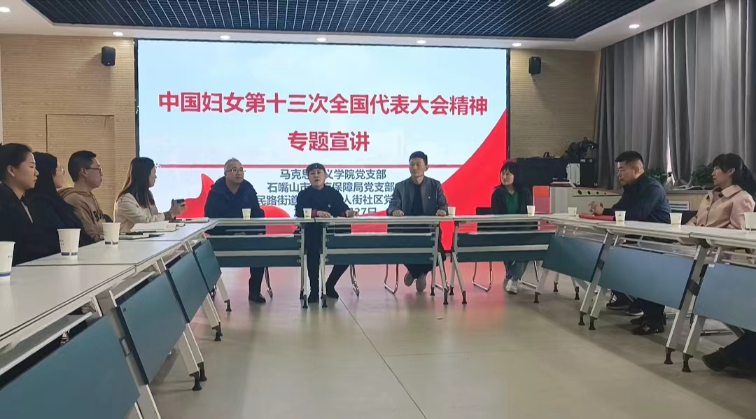 為深入開展學(xué)習(xí)貫徹習(xí)近平新時代中國特色社會主義思想,學(xué)習(xí)中國婦女第十三次全國代表大會精神,10月28日,馬克思主義學(xué)院黨支部與石嘴山市醫(yī)療保障局黨支部、大武口區(qū)人民路街道工人街社區(qū)黨委聯(lián)合開展“巾幗心向黨 奮進新征程”主題黨日活動。全體黨員先后參觀了學(xué)院“石榴紅”教育館和思政VR教學(xué)體驗中心。