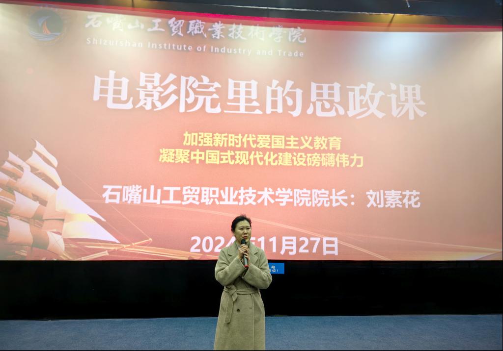 學(xué)院黨委副書記、院長劉素花在觀影前以愛國主義教育為主題作課程導(dǎo)入,她指出,愛國主義是民族精神的核心,是中華民族團(tuán)結(jié)奮斗、自強(qiáng)不息的精神紐帶。學(xué)院不斷拓寬和更新思政課教學(xué)方式,用鮮活的育人資源講好黨的故事、革命的故事、英雄的故事,旨在為廣大青年學(xué)生厚植愛黨、愛國、愛社會(huì)主義的情感,讓紅色基因、革命薪火代代傳承,不斷增強(qiáng)當(dāng)代大學(xué)生的國家意識(shí)、民族自豪感以及社會(huì)責(zé)任感,逐步構(gòu)建學(xué)院“大思政課”育人格局。