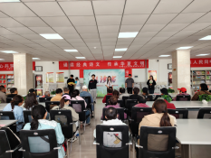 活動(dòng)在怡心社區(qū)王麗副主任宣讀“全民閱讀”倡議書中拉開了序幕,倡議廣大黨員干部、居民群眾多讀書、讀好書、善讀書。接著學(xué)院圖書館熊義林老師帶領(lǐng)全體人員集體誦讀北宋著名文學(xué)家蘇軾的《定風(fēng)波》,朗朗書聲如春風(fēng),淡淡書香潤滿園。之后,又開展了新型材料現(xiàn)代產(chǎn)業(yè)學(xué)院黨支部兩名黨員分享讀書心得、推薦好書、贈(zèng)送書簽、中華經(jīng)典詩文誦讀等活動(dòng)。