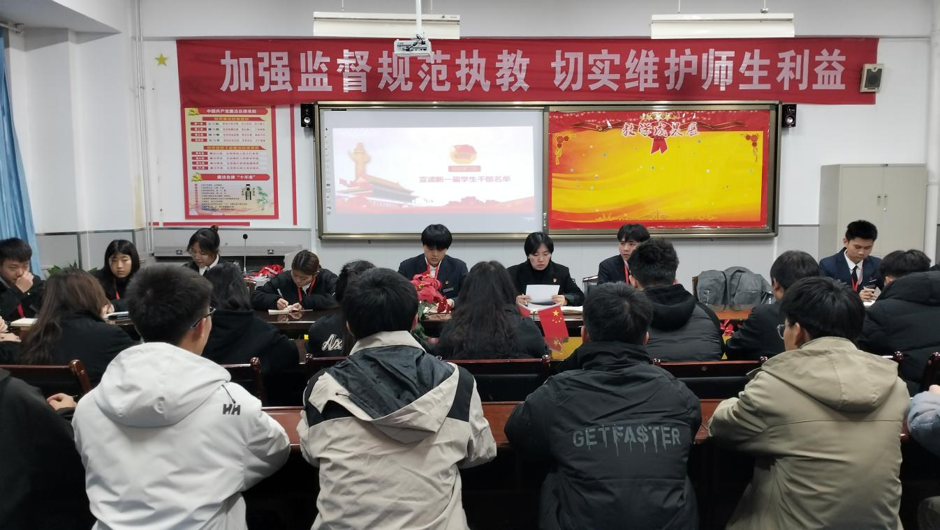 本屆學(xué)生會成員經(jīng)歷了較長的考察期,通過多方面考察,最終確定了30名優(yōu)秀的同學(xué)。儀式上,同學(xué)們莊嚴宣誓,明確作為學(xué)生干部的責(zé)任和要求,鏗鏘的宣誓聲表達著他們以身作則、敢為人先、行為示范的決心。系團委書記呂睿老師為學(xué)生會干部頒發(fā)胸章,將學(xué)生會神圣的榮譽和擔(dān)負的責(zé)任,生生不息地傳承下去。隨后,呂老師開展了一次學(xué)生會干部作風(fēng)建設(shè)培訓(xùn),她強調(diào)在未來的工作中,同學(xué)們要迎接新的機遇和挑戰(zhàn)。她提出一要加強自身建設(shè),不斷加強學(xué)習(xí);二要創(chuàng)新工作思路,豐富校園文化;三要強化服務(wù)意識,維護同學(xué)權(quán)益;四要做到嚴以律己,建設(shè)清廉組織。新一屆學(xué)生會干部們表示將不負眾望,充分發(fā)揮自主管理功能和榜樣示范引領(lǐng)作用,以實際行動踐行誓言,用責(zé)任擔(dān)當(dāng)履行使命,以更加飽滿的熱情、更加務(wù)實的作風(fēng),推動我校學(xué)生工作再上新臺階。