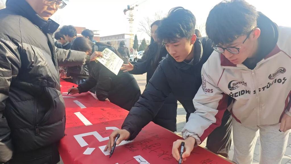 12月9日,石嘴山工貿(mào)職業(yè)技術(shù)學(xué)院機(jī)械工程系的志愿者們?cè)谛@里,開(kāi)展主題簽名活動(dòng),用紙和筆傳承著“一二·九”運(yùn)動(dòng)的愛(ài)國(guó)主義精神。