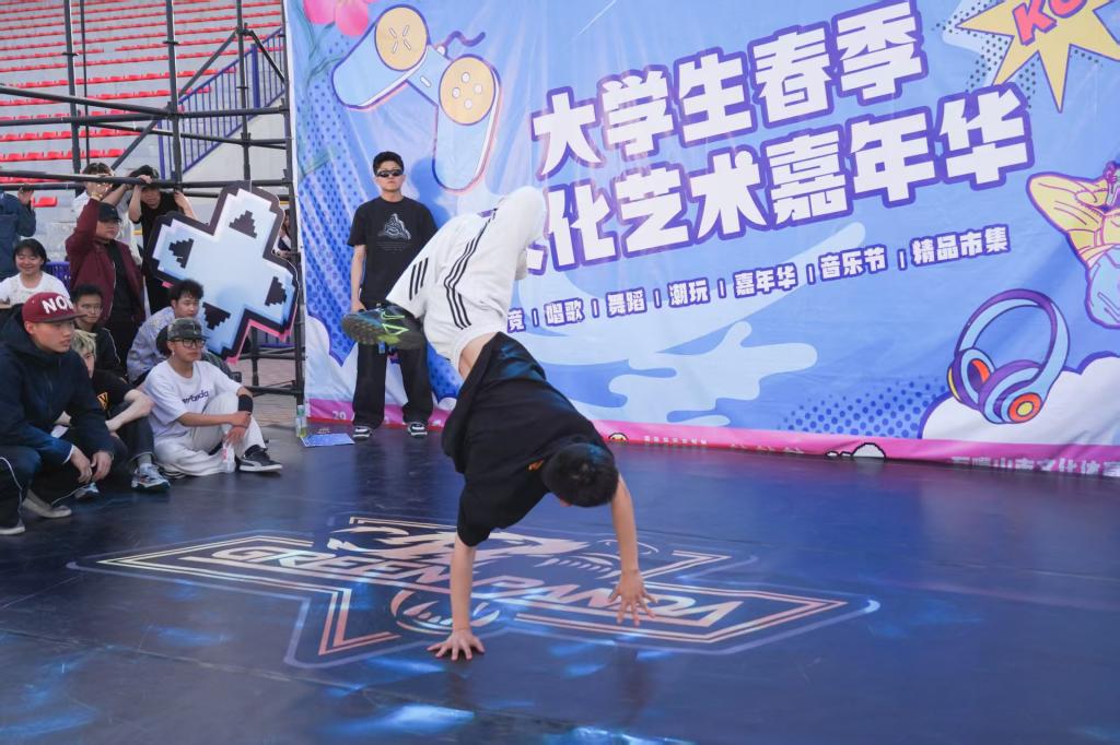 4月18日,“FUN肆青春?燃動星海”2026年大學(xué)生春季文化藝術(shù)嘉年華”街舞比賽在石嘴山工貿(mào)職業(yè)技術(shù)學(xué)院火熱開賽,全區(qū)各高校街舞高手同臺競比,以動感舞姿展現(xiàn)新時代青年風(fēng)采。作為本次賽事的協(xié)辦單位,石嘴山工貿(mào)職業(yè)技術(shù)學(xué)院不僅高標(biāo)準(zhǔn)做好場地布置與燈光音響等設(shè)備保障,動員各路高校學(xué)子同臺競技,還積極組織學(xué)校特色社團(tuán)紛紛“出攤”助陣,開辦“青春好物?閑置煥新”校園創(chuàng)意市集。學(xué)生社團(tuán)們自主裝飾的攤位上匯聚了原創(chuàng)插畫、手工DIY飾品等琳瑯滿目的創(chuàng)意作品,學(xué)生志愿者協(xié)會與紅十字協(xié)會的志愿者們?nèi)袒钴S在現(xiàn)場維持秩序與引導(dǎo)服務(wù),這種“高燃賽事+特色市集+志愿服務(wù)”動靜結(jié)合的模式,不僅為大學(xué)生打造了才藝展示與創(chuàng)業(yè)實踐的雙重舞臺,更充分彰顯了石嘴山工貿(mào)職業(yè)技術(shù)學(xué)院高效的統(tǒng)籌組織力、濃厚的校園文化底蘊(yùn)以及工貿(mào)學(xué)子熱情奉獻(xiàn)的青春風(fēng)采。