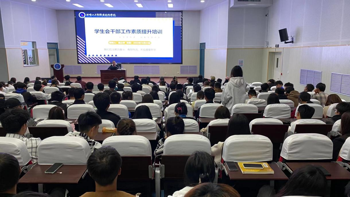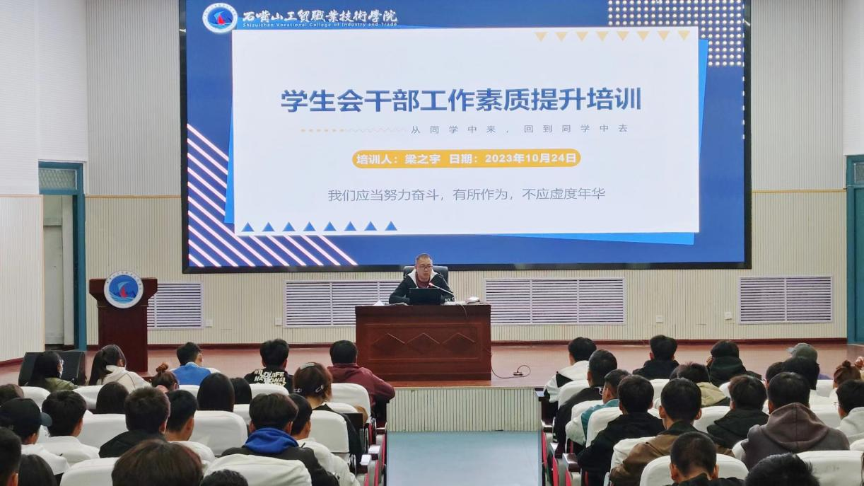 為進一步將面向廣大團員和青年學習貫徹習近平新時代中國特色社會主義思想主題教育工作落實落細,10月24日,石嘴山工貿(mào)職業(yè)技術(shù)學院開展了一場學生會干部工作素質(zhì)提升培訓活動。此次活動旨在提高學生會干部的工作素質(zhì),進一步推動學院學生工作的順利開展。來自校級和各院系的學生會干部參加了此次培訓。