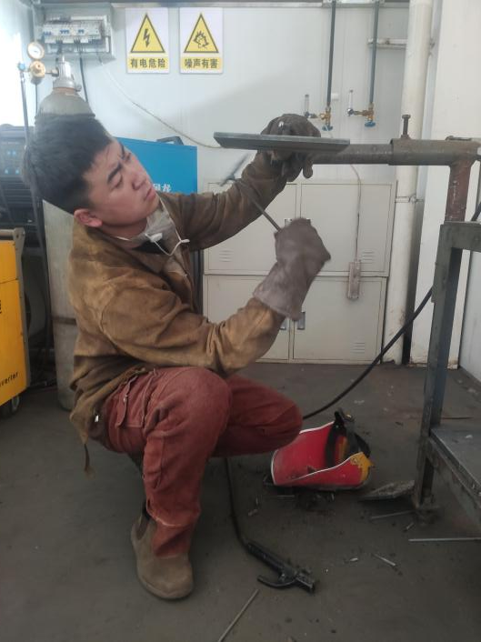 焊接技術(shù)賽項由機械工程系黨員教師劉強、林廣飛指導(dǎo)訓(xùn)練。“焊接技術(shù)賽項集手工焊條電弧焊、氣體保護焊、氬弧焊和機器人焊接于一體。我們按照前期制定的訓(xùn)練計劃,要求選手每天在焊接車間綜合運用焊接方法,在規(guī)定時間內(nèi)完成焊接任務(wù),以此不斷強化選手綜合能力?!绷謴V飛介紹道。