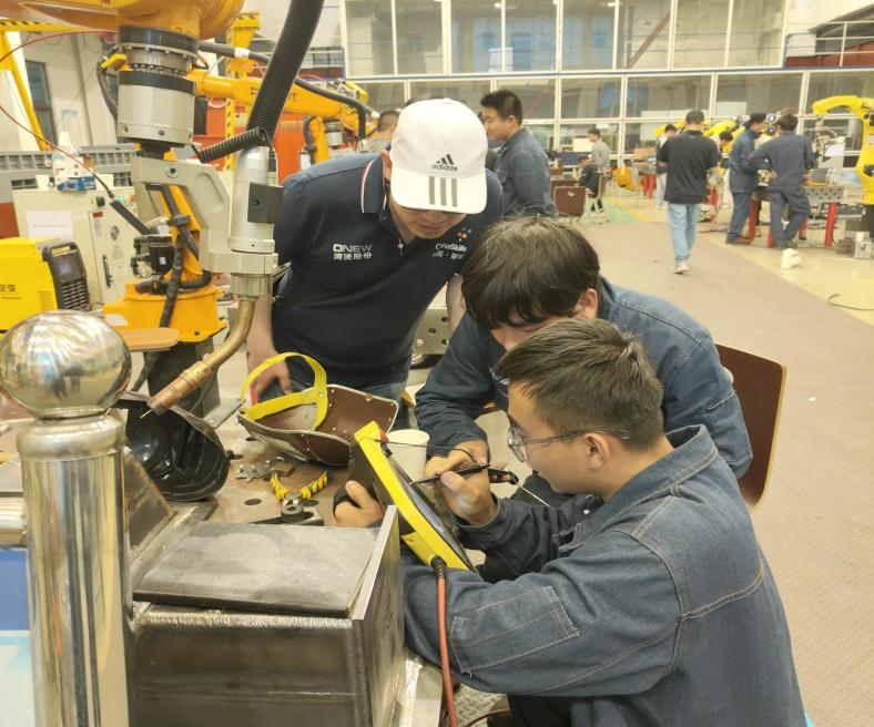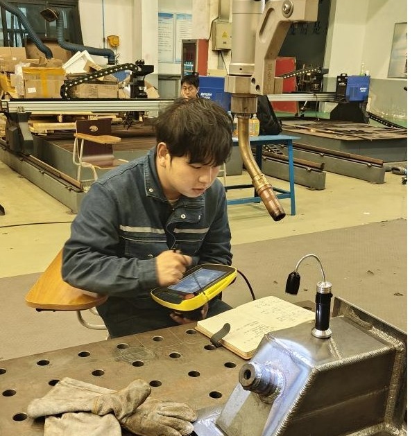 智能焊接技術(shù)賽項由焊接團隊黨員教師吳玉鵬、黨永豐指導(dǎo)訓(xùn)練。5月16日,黨永豐帶領(lǐng)備賽學(xué)生前往威海市榮成市威海海洋職業(yè)學(xué)院進行智能焊接技術(shù)賽項拉練。“在集訓(xùn)期間,我們團隊深深感受到了國賽激烈的競賽氛圍,威海市榮成市威海海洋職業(yè)學(xué)院在設(shè)備操作上對我們的參賽學(xué)生進行了指導(dǎo),讓我們收獲了很多比賽技巧,提高了實戰(zhàn)能力,有力振奮了我們參賽團隊的精氣神?!秉h永豐說。