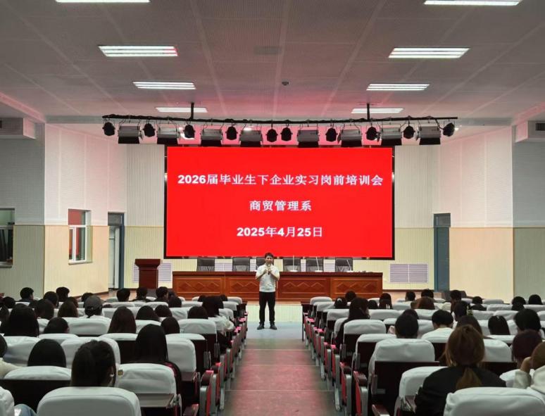 為深入貫徹《中華人民共和國職業(yè)教育法》《職業(yè)學(xué)校學(xué)生實(shí)習(xí)管理規(guī)定》等文件精神,4 月 25 日,石嘴山工貿(mào)職業(yè)技術(shù)學(xué)院商貿(mào)管理系組織開展 2026 屆畢業(yè)生崗前實(shí)習(xí)培訓(xùn)會(huì),全體畢業(yè)生及輔導(dǎo)員參會(huì)。