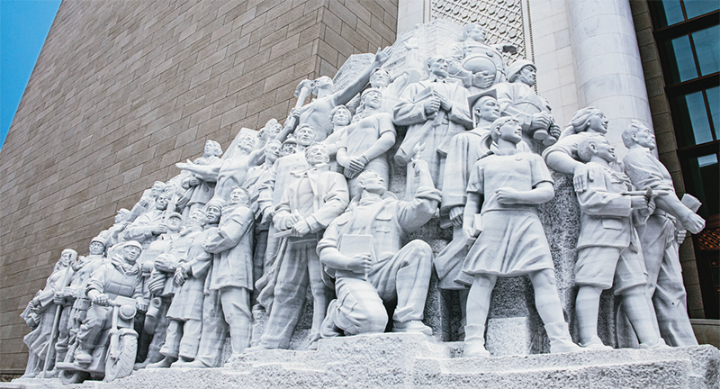 中國共產(chǎn)黨歷史展覽館廣場上矗立的《信仰》、《偉業(yè)》、《攻堅》、《追夢》四組大型雕塑,講述著中國共產(chǎn)黨100多年來為中國人民謀幸福、為中華民族謀復(fù)興的奮斗歷程。圖為雕塑《偉業(yè)》,共塑造65位人物形象,涵蓋不同群體、不同職業(yè),重點反映中國共產(chǎn)黨團結(jié)帶領(lǐng)全國各族人民,堅定“四個自信”,奮發(fā)圖強、艱苦奮斗,推動中國特色社會主義事業(yè)不斷取得歷史性成就。